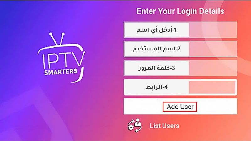 بعد تثبيت التطبيق ستحتاج إلى إعداد بيانات خدمة IPTV الخاصة بك للدخول إلى القنوات والمحتوى. اتبع الخطوات التالية: